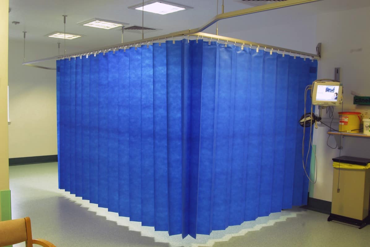 A hospital curtains are also known as a cubicle curtains and is a method of giving privacy to a patient in a hospital. The curtains is usually made from inherently flame retardant (IFR) fabric, and is normally suspended from a supporting structure or ceiling track and reaches almost all the way to the floor.